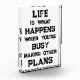 "Life Is What Happens When You’re Busy Making Other Plans" funny motivational quote. A potent reminder that we can create all sorts of goals and ambitions for the future, but when we have a strong orientation to the future we can forget to live fully in the meantime.