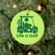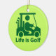 Life is Golf, golf ornament. The simple design features a golfer riding a golf cart with his clubs in the back. The design colours are green and you can change the colour of the green background as well. You can also add a name to personalise it if you want.