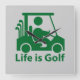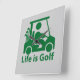 Green golfer in cart wit clubs image and live love golf text, can be changed to any image,text or photo you like.
