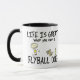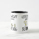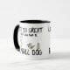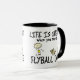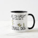 Life is Great when you own a Flyball Dog. With a cute cartoon of a stick figure cartoon jumping up and down excitedly as a small brown dog brings back the ball. Unique flyball mug!