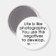 This stylish and fun graphic design with the phrase "Life is like photography. You use the negatives to develop" is perfect for the photographer looking for something unique for their wardrobe.