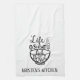 This is a fun towel with an outline of a bowl and spoon and spatula and states "Life is Short Lick the Bowl". You can add text to personalise it if you choose. It says Kristen's Kitchen as an example but that can be easily changed.