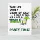 Take Life with a Grain of Salt, A Slice of Lime and a shot of TEQUILA! Tequila and Cocktail Humour from The Martini Diva featuring an illustration of a Tequila Shot with a Slice of Lime and Salt. Perfect for any party or happy hour celebration, Bachelor or Bachelorette Parties or any cocktail party.