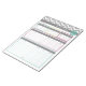 This is a perfect planner for busy families... easy to use and well organized. Each page rips off after use and the new page is ready for the next week. Clear print and personal monogram is fun.