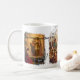 Coffee mug featuring paintings of major scenes from the life of Saint Joan of Arc. Classical paintings presented in a stylised manner.