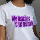 Slogan t-shirt. Reads, "life teaches love reveals" Meaning live your life from your mistakes sure but love the life you lead and take a chance on love to reveal its true meaning and beauty. This is my take on this cryptic quote, but feel free to interpret as you wish. Item designed exclusively by Sarah Trett.