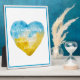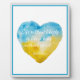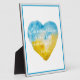 Beautiful tabletop plaque inspired by the resilient spirit of the people of Ukraine, featuring watercolor heart in Ukraine flag colours of blue and yellow with inspiring quote from Kahlil Gibran.