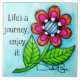 "Life's A Journey" is a watercolor painting of a single whimsical flower of pink and orange with black and white check centre over a teal blue background. Accenting the flower is the text, "Life's a journey, enjoy it." This colourful design was created by Debi Payne Designs. Select the products that you use most or will see most often in your daily life and let them serve as inspiration and motivation for you to stay focused and on track to achieve your greatest personal growth and development possible.