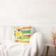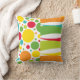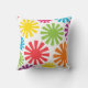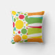 American MOJO pillow with Life's a Party design, a mixture of bright colours polka dots, flowers, and swirly stripes on a white background.