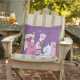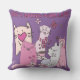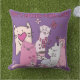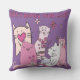 Outdoor pillow with a pretty purple background and lots of cute cartoon cats, butterflies, and text of pink that reads Life's Better With Cats!