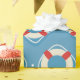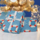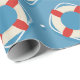 A repetitive nautical-themed pattern featuring life preservers with bold red and white accents against a vivid blue background. The design captures a marine safety vibe, evoking seaside adventures and oceanic charm.