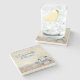The coasters are gorgeous, a quality feel and heavy weight. They look like a precious archeological find. A rustic stone juxtaposed with a modern floral black and white print. I like the way the print goes slightly imperfect on the cut stone edges giving them a kind-of natural beauty.