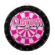 Pink and Black Coloured with White and Black Outlined Pink Text Custom Dartboard Including 6 Brass Darts
