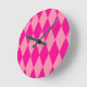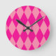 Light and Dark Pink Harlequin Diamonds Checkers Round Clock