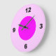 A simple wall clock with a light pink background under large black numbers and a darker pink face with a thin white outline and simple numbers. For any pink decor room. Click Customise It to add your custom text, change background colours and more.