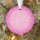 Create your own girly glam Christmas ornament featuring the background colour of your choice and a round faux bright hot pink glitter border.