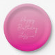 Light and Hot Pink Ombre Happy Birthday Paper Plate