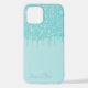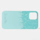 Contemporary light aqua turquoise green coloured faux glitter cellphone case. With room to customise with a name, monogram, or initials of your choice. Beautiful, modern, and cool cover for the trend-savvy and art-loving hip trendsetter, artsy motif lover who wants to protect their phone from dust and dirt, wear and tear. This design is available in Apple iPhone 6, 7, and 8 Plus, 10 or X, XR, XS, 11, 12, 13 Mini, 14 Plus, and Pro Max cellphone cases. Show off your style, look fashionable, and feel stylish with a unique design on a mobile device accessory of your choice.