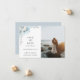 Elegant light blue airy flowers and botanical foliage, Photo Wedding Save the Date Card. Backing colour, shown in trendy pastel light blue, can be customised.