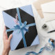 Alternating light blue and black chevrons converge in this bold, original geometric pattern.