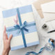 Light blue and white awning stripes for a simple and chic style. Perfect for those looking for a classic charm for their gift wrapping.