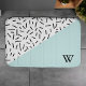 Light Blue and Geometric Pattern Monogrammed Bath Mat