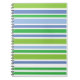 This blue and green striped notebook is perfect for notetaking and journalling. Design by artist Becky Volk.