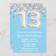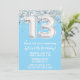 Light blue silver and white 13th Birthday invitation 13 birthday party invitation for a black white silver with modern script writing and fun foil balloons.