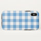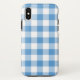 Protect your iPhone X with a rugged Case-Mate Tough case featuring light blue, white, and pale blue squares in a bold buffalo plaid.