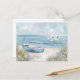 Escape to the serene beauty of the coast with our stunning watercolor postcard featuring a white and blue coastal landscape. Perfect for all beach lovers and sea enthusiasts. Let the calming waves and sandy shores bring a piece of the ocean to you wherever you are. Order now and let your mind drift away to the seaside paradise.