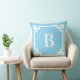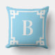 Decorative light blue and white Greek key style square border with a modern serif monogram.