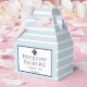 Perfectly classic pale light blue and white seersucker striped with navy accents hangover relief kit favour box that is customisable.