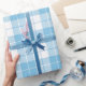 A wrapping paper designed with a light blue and white plaid pattern in large size. Customise the white background among other options.