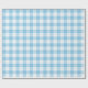 A wrapping paper designed with a light blue and white plaid pattern. Customise the white background among other options.