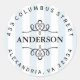 An attractive awning stripes pattern in light blue and white with your address in a circular layout and last name featured horizontally across the centre. Decorative emblems surround the last name. Enter your address info in pace of the sample address shown. To achieve the same text effect, type a blank space between each character and two black spaces between words. These stickers are available in a small 1 1/2" size and a larger 3" size. The small ones make nice return address labels or seals for invitations, letters or cards.