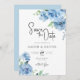Light Blue Baby Blue Floral Leaves Save The Date I Invitation