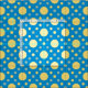 Seamless pattern with multiple shades of yellow polka dots in variable sizes on a blue background colour. Change the tile size to make the pattern appear bigger