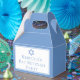 This light blue Bat Mitzvah party favour box has a beautiful, artistic Star of David drawing at the top. Complete the design with your personalised name on the cute boxes.