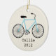 An ornament featuring an illustration of a light blue bicycle. Personalise with your name under bike.