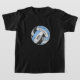 This fun volleyball team colours t-shirt for girls with custom team and school mascot name features the realistic stylised image of a light blue, black and white volleyball that has an artsy floral kaleidoscopic pattern blended with its blue and black panels - her name and team name are customisable, as is her jersey number - by katz_d_zynes
