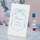 It is sturdy than I expected. Was worried about the material being flimsy but it is not. It is printed on some sort of plastic material. It should serve well at our wedding as long as wind isn’t too bad. Otherwise we will put some paper weights behind it and should be fine.