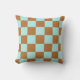 A light blue and brown chequerboard pillow with a bold geometric style. Perfect for modern decor.