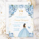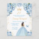This elegant and glamourous birthday party invitation features a beautiful princess with brunette hair in a light blue ball gown. The text combines handwritten script and modern sans serif fonts for a classy and sophisticated look. The floral arrangements, butterfly and gold confetti create the perfect blend of rustic and chic.