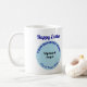 Mug with Easter greeting and light blue round shape business branding that you can customise by uploading your business logo, typing your business name and the location of your business. You can include it in your promotional products, giveaway items or gifts to your customers or clients this Easter, a marketing strategy to advertise your business or to promote your brand name. Customisable mug that you can use to build brand name awareness. Please check the appearance of the front and back sides after uploading logo and typing texts. If the appearance is pleasing to you, you can place your order now. If you need to resize and reposition the logo and texts to fit in the template or in the style that you've chosen, please adjust in the design tool. Happy Easter! Wishing you more sales this holiday.