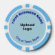 Poker chips that you can customise to put your business name, logo, city or town and state. You can use it during corporate events to advertise your business or to promote your brand name while entertaining your customers, clients or guests. Customisable poker chips that your can use to build brand name awareness while enjoying business parties. Design colours are dark blue texts on light blue background. Please check the appearance on front and back sides after uploading logo and typing texts. If the appearance is pleasing to you, you can place your order now. If you need to resize and move the logo and texts to fit on the poker chips, please change in the design tool. You can also change the font style, font colour and the inner background colour in the design tool.