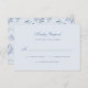 These elegant, dusty blue and light blue wedding rsvp response cards feature a vintage blue watercolor floral pattern with lovely botanical leaves on the back, and stylish calligraphy along with classic text on the front. The French look blue toile design will add a romantic and chic touch to your wedding stationery.