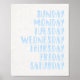 Support your child’s daily rhythm with this light blue Days of the Week poster—designed to reinforce weekday recognition in a calm, visually structured format. Each day is styled in soft blue uppercase letters on a clean textured background, making it ideal for minimalist nurseries, modern playrooms, or classroom walls.