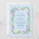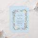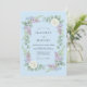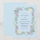 A serene light blue background is decorated with a soft arrangement of white roses and cascading purple flowers. Lush green ferns and eucalyptus leaves provide a fresh, botanical feel to the artwork. This airy watercolor aesthetic evokes a romantic and peaceful atmosphere for a spring event.