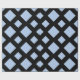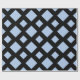 A stylish, geometric pattern of large and small light blue diamonds on a black background. The black forms a lattice which separates the baby blue diamond shapes.