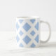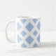 A stylish, geometric pattern of large and small light blue diamonds on a white background. The white forms a lattice which separates the baby blue diamond shapes.